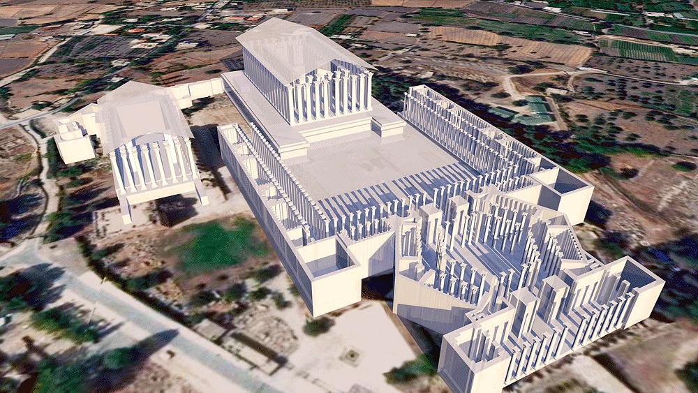 Las rampas de tierra facilitaban el paso desde la cantera —situada unos 800 metros al suroeste del templo y en una cota ligeramente superior— hasta el podio, lo que evitaba levantar verticalmente las piezas: el bloque “descendía” controladamente por su propio peso.