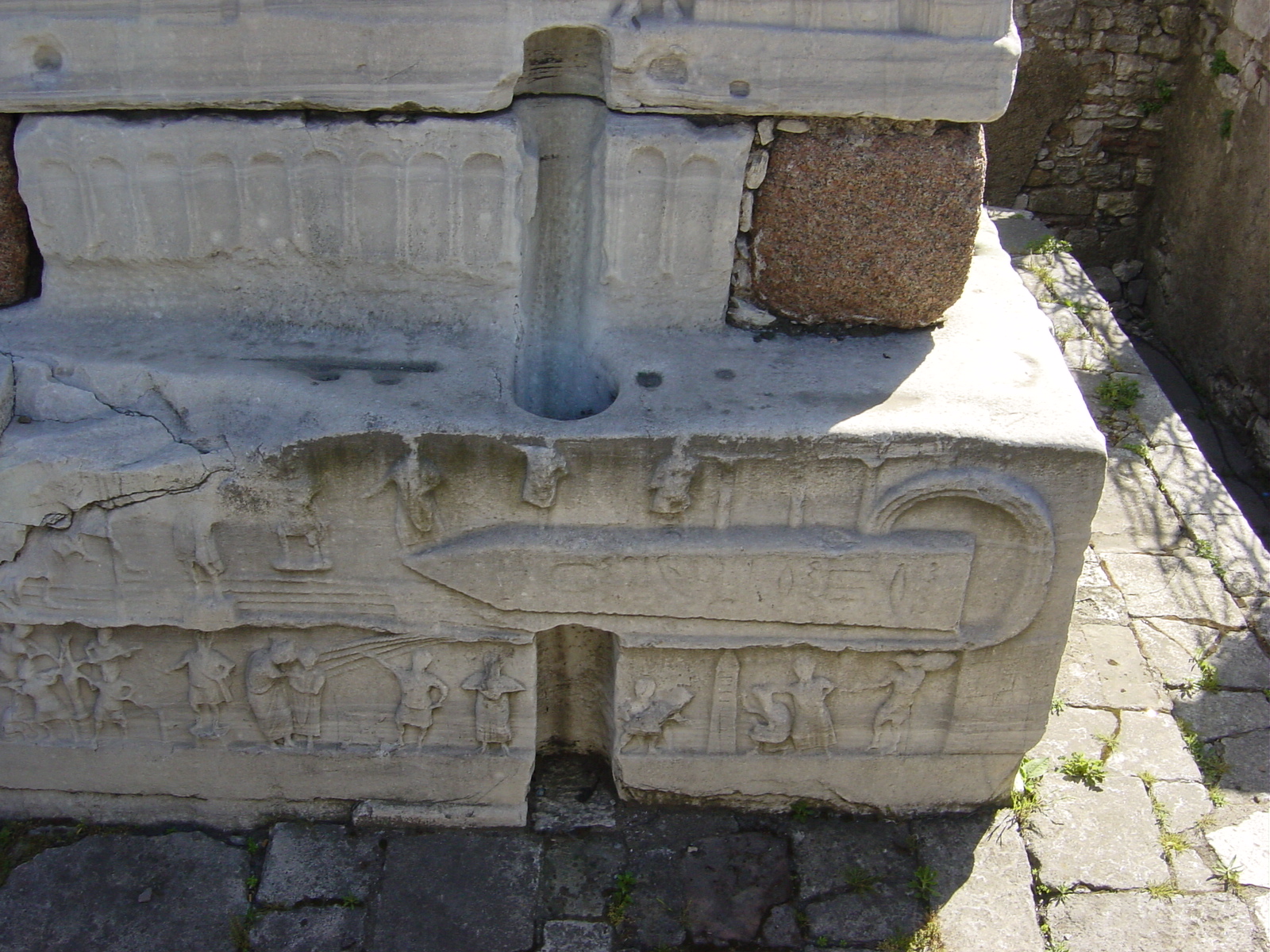 Un siglo después, el emperador Constancio II hizo llevar desde Tebas el obelisco de Karnak —de 32 metros y 455 toneladas— hasta Roma, erigiéndolo en el Circo Máximo. Aún más tarde, Teodosio el Grande hizo lo mismo en Constantinopla; en la base del obelisco aún se conservan relieves que muestran con precisión el uso de cabrestantes, poleas y rampas durante la maniobra.